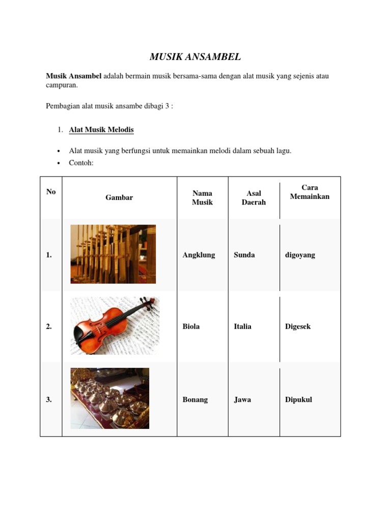 Musik ansambel sejenis terdapat satu jenis alat musik dalam jumlah banyak. Musik ansambel memang mempunyai banyak sekali keaneragam alat musik dari keanekaragaman alat musik itu dibagi menjadi tiga bagian berdasarkan fungsi yaitu alat musik ritmis alat musik melodis dan alat musik harmonis. Berdasarkan peranan dan fungsinya. Ansambel melodis ansambel melodis adalah alat musik yang digunakan berfungsi untuk memainkan rangkaian nada nada yang merupakan melodi lagu. Apabila anda belum mempunyai keahlian dalam memainkan gitartentu anda bisa belajar dengan membaca cara cepat belajar gitar dengan mudah. Musik ansambel campuran ini merupakan bentuk penyajian musik ansambel yang menggunakan beberapa jenis alat musik atau juga bermacam macam jenis alat musik.