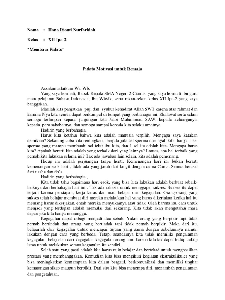 Berdasarkan gambaran itu maka tidak ada alasan kalau guru tidak bisa berkomunikasi kalau diminta menjadi pembina. Motivasi menginspirasi dalam pidato amanat pembina upacara senin. Teks pidato singkat yang kami bagikan sekarang adalah amanat pembina upacara tentang motivasi belajar. Pembina upacara motivasi belajar wahyu. Baca juga artikel kumpulan pidato tentang disiplin yang juga dapat anda jadikan referensi dalam berpidato. Contoh amanat pembina upacara tentang kejujuran ujian nasional.