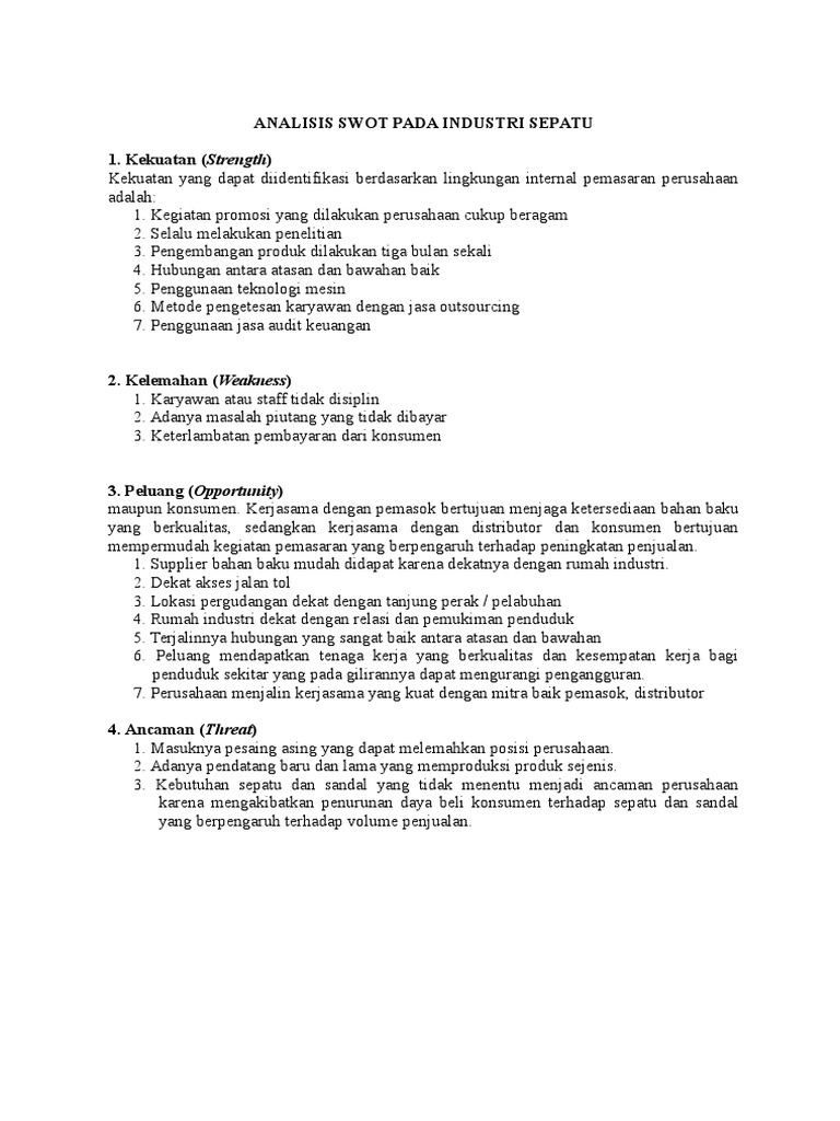 Contoh analisis swot perusahaan. Teknik analisis swot pertama kali diperkenalkan oleh albert humphrey yaitu pemimpin proyek riset universitas stanford. Adalah kekuatan atau kelebihan perusahaan yang tidak dimiliki oleh yang lainnya. Analisis swot pengertian manfaat unsur cara membuat dan contohnya memimpin suatu perusahaan yang mampu mengelola kegiatan tertentu pasti membutuhkan sistem serta ketentuan tertentutujuannya tentu saja agar menjaga suatu perusahaan tetap berjalan dan untuk dapat bersaing dengan pesaing lainnya. Pada saat ingin melakukan analisis swot pada perusahaan hal yang perlu dilakukan sebelumnya adalah membuat beberapa pertanyaan dan menjawabnya sendiri berdasarkan keadaan yang sesuai pada organisasi maupun perusahaan anda. Berikut ini adalah contoh sederhana dalam melakukananalisis swot dalam suatu mengevaluasi kekuatan kelemahan peluang dan ancaman suatu perusahaan. Analisis swot produk cassava castle.