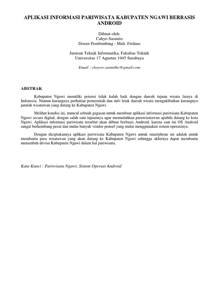 Aplikasi untuk mengakses data berbasis informasi akademik mahasiswa pada jurusan teknik elektro saat ini masih dilakukan secara manual. Aplikasi pembelajaran membaca al quran berbasis android 26. Contoh abstrak baik untuk skripsi tugas akhir proposal karya ilmiah tesis ataupun penelitian pada dasarnya memilki pengertian yang sama. Aplikasi untuk mengakses data berbasis informasi akademik mahasiswa pada jurusan teknik elektro saat ini masih dilakukan secara manual. Jenis penelitian yang digunakan adalah jenis penelitian kualitatif dengan metode design and creation. Dengan aplikasi android ini pengriman pesan teks menjadi lebih aman karena dilakukan enkripsi dan dekripsi dalam pengiriman pesan ini.