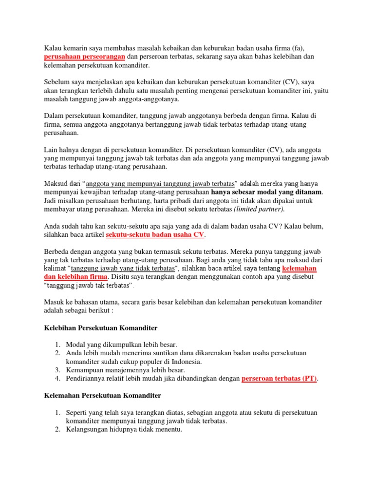 Ada bentuk badan usaha yang telah diganti dengan sebutan dalam bahasa indonesia. Assalamualaikum wrwb pertama tama saya panjakkan syukur kepada allah yang telah memberikan rahmat atau reskinya kepada saya dan mempertemukan saya juga dengan aki rahman dan melalui bantuan pesugihan beliau aku mendapatkan uang sebesar 20muang ini aku manfaatkan untuk menyumbankan sebagian dan juga pergunakan untuk membuka usaha karna sudah banyak. Firma merupakan sebuah usaha yang didirikan oleh dua orang atau lebih dimana setiap anggota berperan aktif dalam menjalankan perusahaan. Perserikatan dagang antara beberapa perusahaan atau sering juga disebut fa adalah sebuah bentuk badan usaha untuk menjalankan usaha antara dua orang atau lebih disebut firmant dengan memakai nama bersama atau satu nama yang digunakan bersama untuk memperluas usahanya. Contoh badan usaha firma firma dari bahasa belanda venootschap onder firma. Badan usaha firma dianggap berakhir tutup masa operasionalnya jika salah satu anggota mengundurkan diri atau meninggal dunia.
