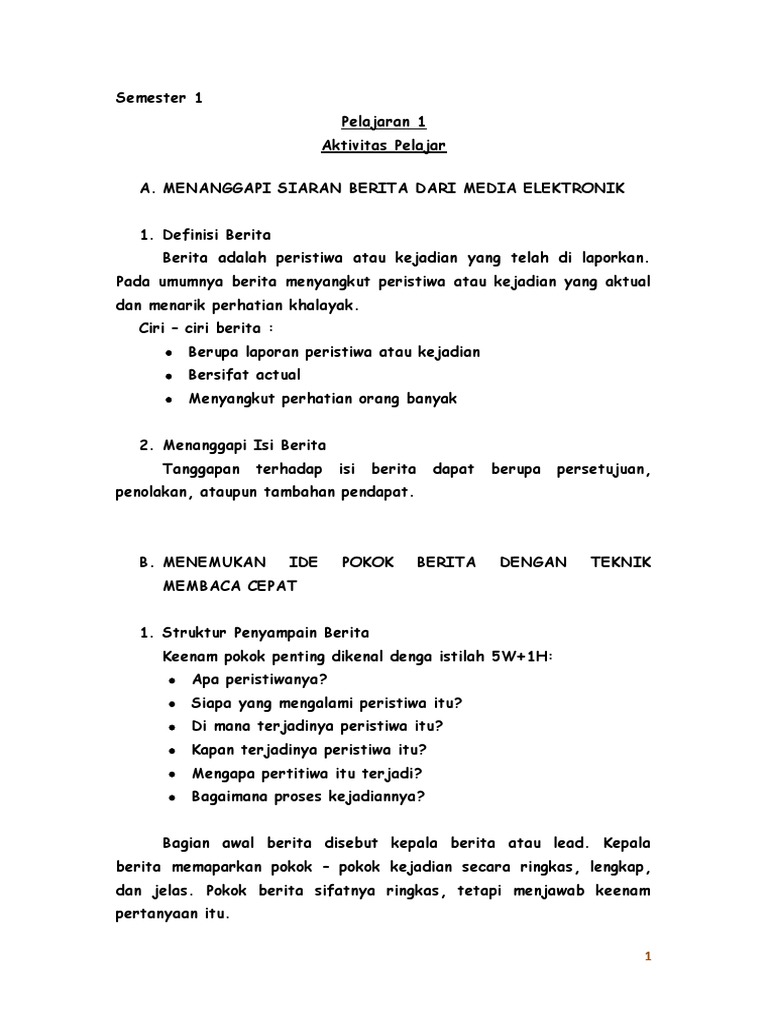 Apa di mana kapan siapa mengapa bagaimana disingkat adik simba. Charniey romli 20095 mengemukakan bahwa berita adalah laporan tercepat dari suatu peristiwa atau kejadian yang faktual penting dan menarik bagi sebagian pembaca serta menyangkut kepentingan mereka. Apa di mana kapan siapa mengapa bagaimana disingkat adik simba. Adapun kategori yang masuk dalam berita majalah. Dalam menyimak berita kita harus memahami isi berita dengan memerhatikan pokok pokok beritanya. Kalian dapat memahami isi berita yang kalian dengar cukup dengan memahami pokok pokok isi beritanya.