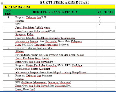 Sebelum team asesor akreditasi datang ke sekolah atau madrasah tentu penyelenggara sekolahmadrasah harus membuat persiapan diantaranya adalah. Dalam blog ini kami bahas bukti fisik akreditasi sekolah sdmi lengkap 119 instrumen akreditasi dari 8 standar.
