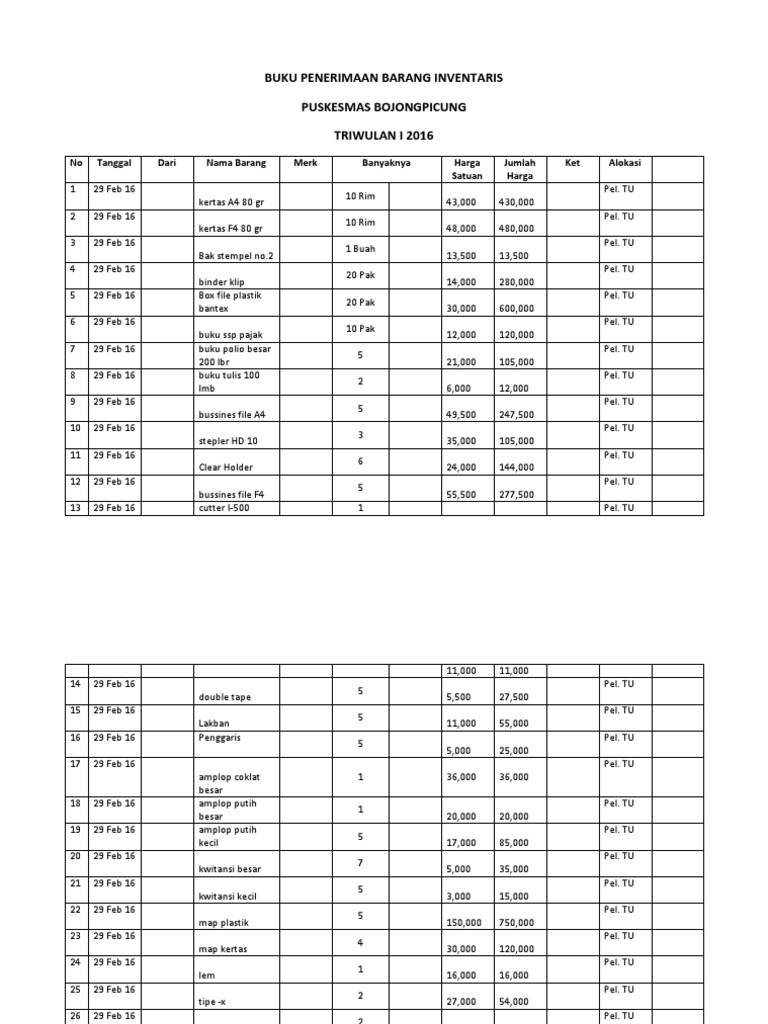 Contoh Buku Penerimaan Barang Pengeluaran Barang Inventaris