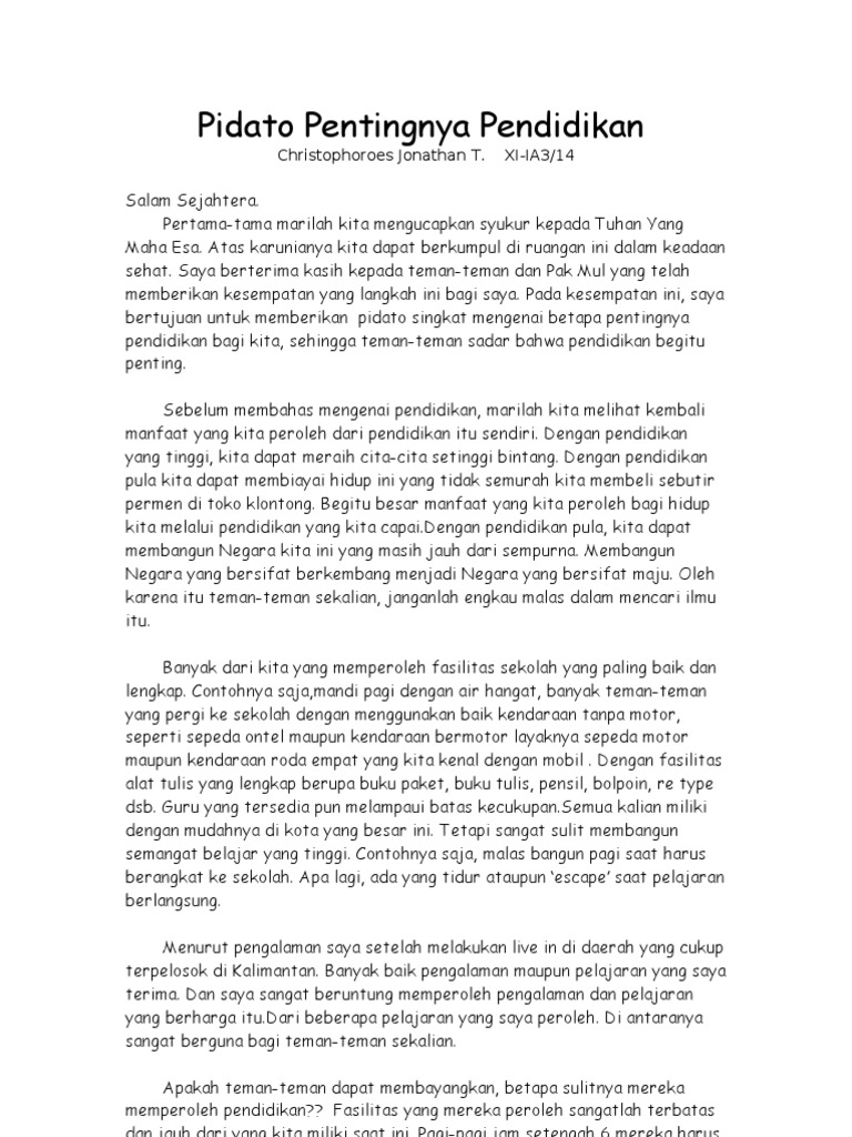Contoh Pidato Singkat Pendidikan Masukuniversitas Com