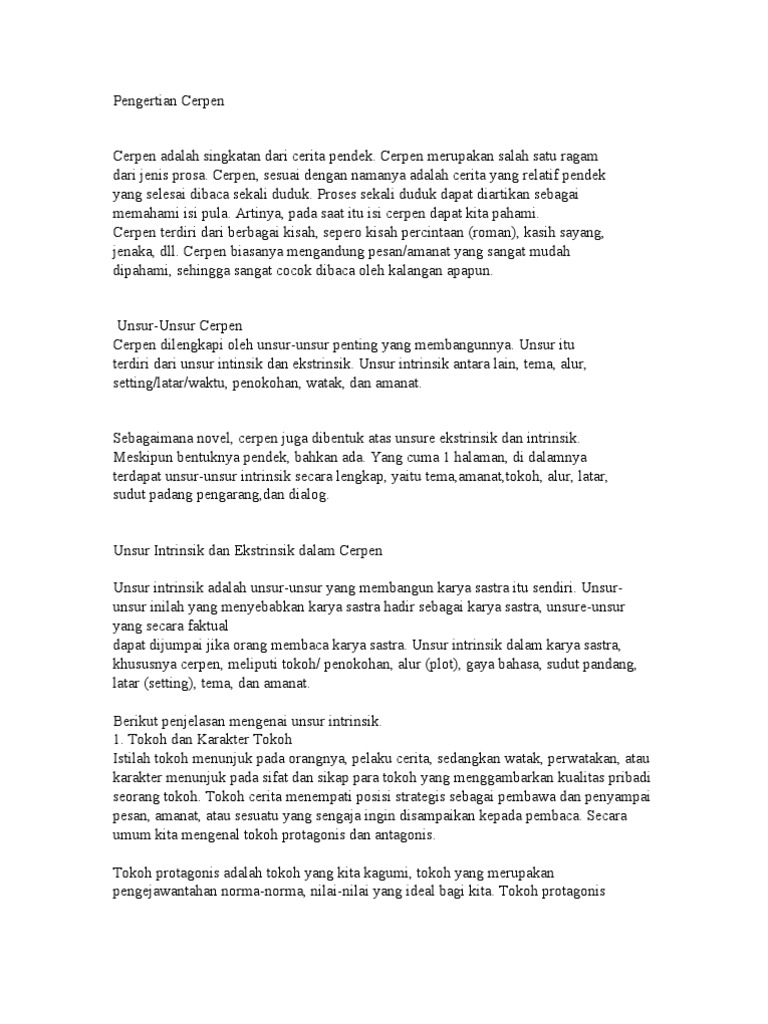 Biasanya di dalam karya sastra ada banyak sekali nilai nilai kehidupan yang bisa kita ambil yaitu nilai moral sosial religius budaya pendidikan etika estetika politik patriotik psikologi ekonomi historia dan sebenarnya masih ada banyak lagi. Nilai nilai sebuah cerpen sesungguhnya merupakan bentuk realisasi dari fungsi cerpen sebagai media pendidikan bagi pembaca. Berikut ini akan kami berikan contoh cerpen beserta penjelasan unsur intrinsik dan unsur ekstrinsik yang ada dalam cerpen tersebut.