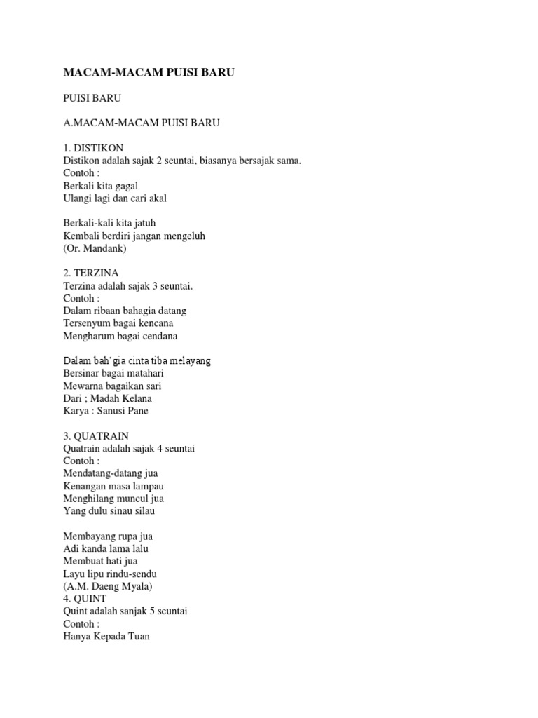 Contoh contoh puisi lama. Terlihat kaku karena puisi lama sangat terikat dengan aturan. Berdasarkan waktunya puisi dibagi menjadi puisi lama dan puisi baru. Cahari olehmu akan sahabat yang dapat dijadikan obat cahari olehmu akan guru yang mampu memberi ilmu. Sangat terikat oleh aturan aturan seperti kuantitas baris tiap bait dan kuantitas suku kata. Puisi merupakan salah satu karya sastra yang berisi pemikiran dan perasaan penulisnya. Jenis jenis puisi lama dan contohnya puisi merupakan salah satu media yang sering digunakan untuk menyampaikan pesanpesan ini dapat berupa nasihat atau ungkapan pribadi seseorang kepada orang lain.