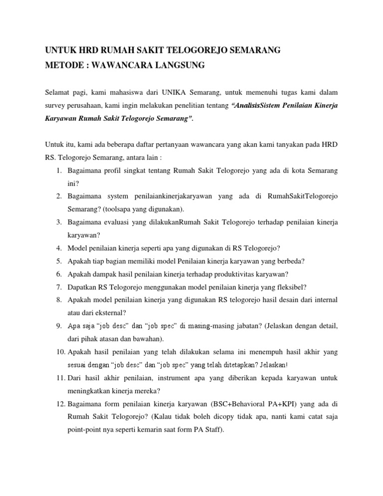 Contoh daftar pertanyaan wawancara penelitian kualitatif. Adapun pada pembahasan berikut ini yang membahas mengenai pedoman wawancara penelitian didalam belajar menyusun bagian bagian skripsi yang akan diuraikan yakni sebagai berikut. Contoh format pedoman wawancara penelitian skripsi adalah pokok pembahasan materi skripsi dan tugas akhir yang akan dijelaskan dengan lengkap dan detail pada materi belajar berikut ini. Semoga saja bagi anda yang sekarang ini sedang mempersiapkan diri untuk melaksanakan wawancara kualitatif bisa terbantu dan memperoleh referensi dari artikel ini. Metode penelitian kualitatif saat anda mengijak perguruan tinggi dan menginjak semester akhir biasanya akan di beri tugas untuk membuat karya penelitian nah salah satunya adalah penelitian kualitatif ini untuk mempermudah anda dalam mencari referensi berikut adalah pembahasa lengkap mengenai metode penelitian kualitatif serta contoh dan pembahasannya. Karakteristik penelitian kualitatif kajian naturalistik analisis induktif holistik data kualitatif. Data dan informasi yang diperlukan dalam penelitian kualitatif berhubungan dengan pertanyaan untuk mengungkapkan proses dan bukan dari hasil akhirnya.