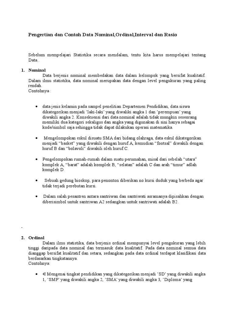 Data nominal ordinal interval dan data rasio oleh. Berikut ini adalah ciri ciri dari skala interval. Contoh skala nominal ordinal interval dan rasio a. Pengertian dan contoh data nominalordinalinterval dan rasio sebelum mempelajari statistika secara mendalam tentu kita harus mempelajari tentang data. Skala interval ini bisa dikatakan berada diatas skala ordinal dan nominal. Besar interval ini bisa saja di tambah atau dikurang.