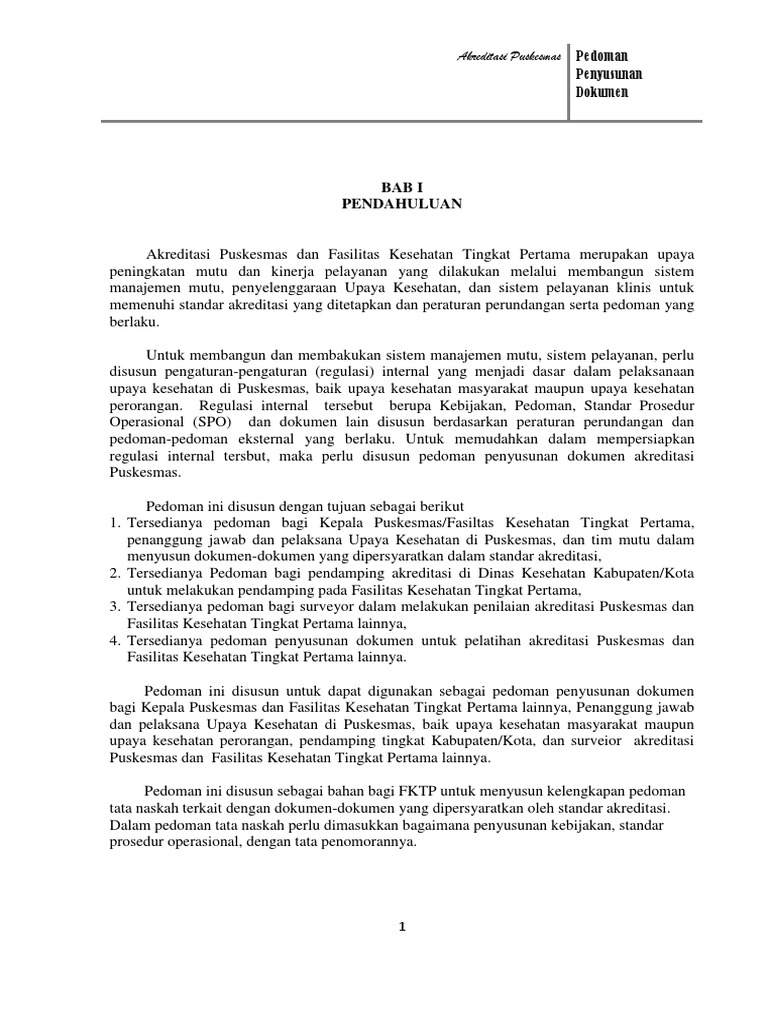 Contoh dokumen kebijakan contoh kerangka acuan contoh. Akreditasi puskesmas dan fasilitas kesehatan tingkat pertama merupakan upaya peningkatan mutu dan kinerja pelayanan yang dilakukan melalui membangun sistem manajemen mutu penyelenggaraan upaya kesehatan dan sistem pelayanan klinis untuk memenuhi. Bukan dokumen baku silahkan modifikasi sesuai dengan kemampuan dan kebutuhan puskesmas secara rasional. Dapatkan dokumen akreditasi puskesmas lengkap. Dokumen eksternal dasar hukum peraturan perundangan referensi kebijakan pemerintah dll 2.