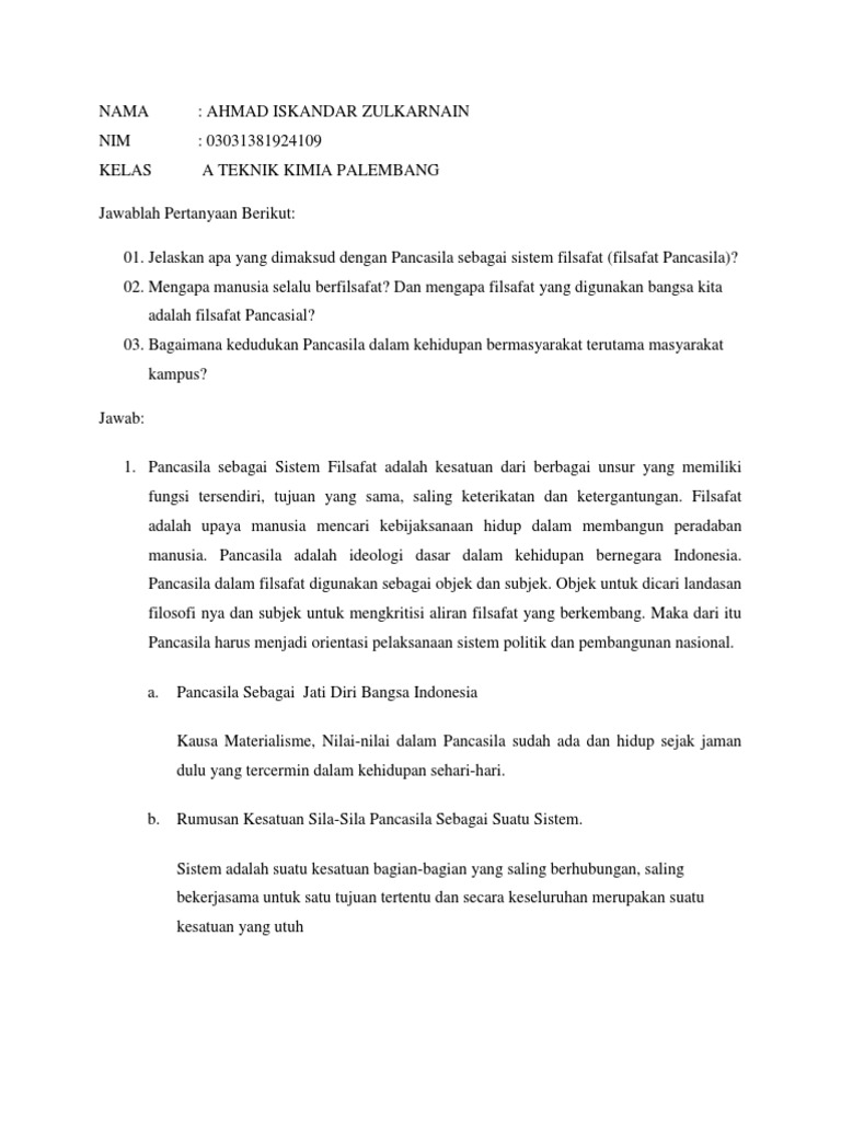 Dengan demikian kita telah menjunjung tinggi nilai kebangsaan negara indonesia dan menjaga identitas negara kita. Seorang filsuf juga sering dianggap terlalu sibuk memikirkan persoalan mengawang awang yang sulit dicerna dan tidak berguna. Filsafat adalah istilah populer yang sering disalahartikan menjadi hal rumit yang sulit untuk dimengerti dan tidak berkaitan dengan kehidupan sehari hari. Padahal terlalu sering terjadi bahwa problem yang ditimbulkan oleh penerapan ilmu pengetahuan dan pemanfaatan teknologi dalam kehidupan manusia sehari hari bukanlah problem problem teknis ilmiah melainkan problem yang mempunyai kandungan moral.