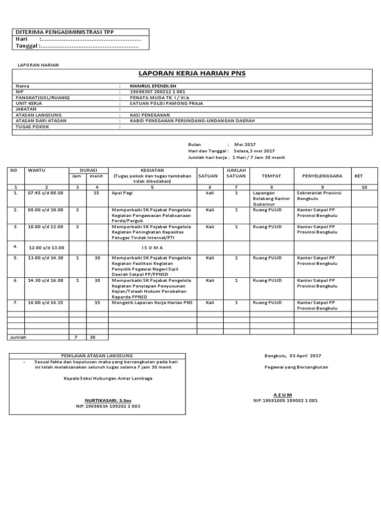 Contoh format buku harian kerja pns. Untuk itu dengan adanya aplikasi skp versi terbaru tersebut diharapkan dapat membantu bapak dan ibu guru. Demikian mengenai format laporan kerja harian pns. Semoga dapat memberikan manfaat dan informasi kepada bapak ibu guru sekalian. Bagikan topik ini ke. Lama kerja jam kerja shift work. Tidak perlu report lagi setting setting.