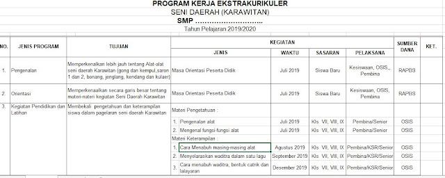 Kumpulan program kerja ekstrakurikuler kokurikuler intrakurikuler sekolah ini merupakan file terbaru yang akan saya share buat anda khususnya dalam memenuhi bukti fisik akreditasi sdmi standar isi instrumen no1 bagian poin d. Inilah contoh rencana program ekstrakurikuler sekolah dasar format microsoft word lengkap. Download file dalam format docx microsoft word. Kecamatan baregbeg kabupaten ciamis tahun 20142015 program kegiatan ekstrakurikuler. Program kerja ekstrakurikuler pramuka. Berkas ini mudah mudahan berguna sebagai referensi ditujukan untuk guru olahraga kepala sekolah di smp atau pihak lainnya yang memerlukan.