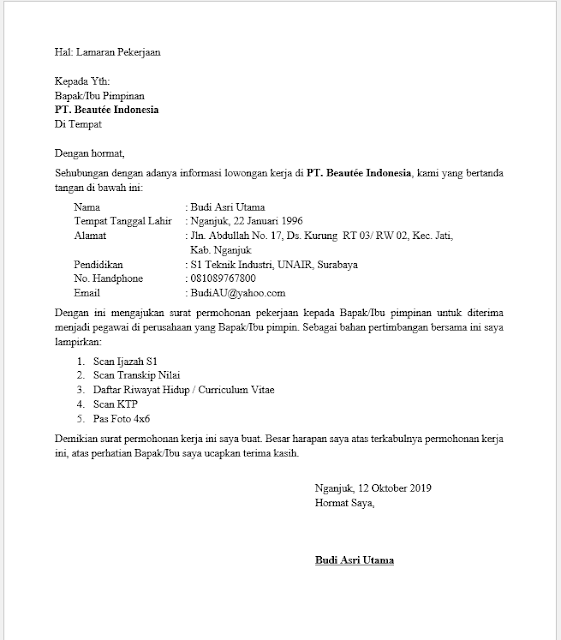 Contoh Surat Lamaran Kerja Tulis Tangan Yang Benar 2019