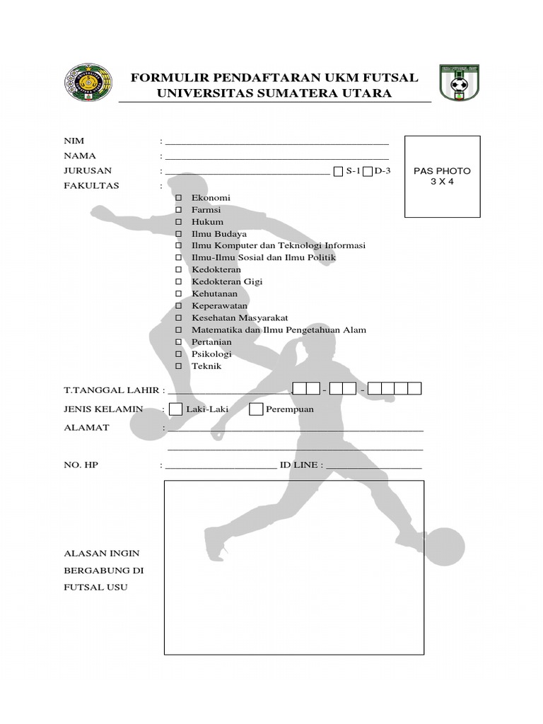 Contoh formulir pendaftaran futsal. Semua persyaratan wajib dikumpulkan terakhir saat technical meeting. Formulir pendaftaran peserta futsal fik cup 2017 saya yang bertanda tangan dibawah ini. 10 contoh kalimat homonim beserta arti katanya semoga dengan adanya contoh formulir dalam bentuk tersebut bisa membantu anda untuk menyelesaikan apa yang sedang anda cari cari. Doc formulir pendaftaran anggota gerakan pramuka emma contoh formulir registrasi anggota pramuka baru smp pilpay. Ini dia update 2018 dari contoh formulir pendaftaran siswa baru untuk ppdb 2017 2018 materi terkait akan dibagikan lewat postingan hari ini dibagikan dalam format file file yang diambil dari sumber terpercaya dan file tersebut bisa dimanfaatkan oleh guru dalam menampung calon siswai baru yang akan daftar di masing masing sekolah. Form pendaftaran lomba futsal by masterpiecerp.