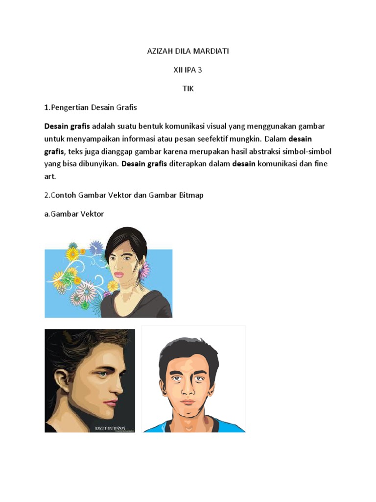 Gambar bitmap gambar berbasis bitmap adalah gambar yang terdiri dari piksel yang berada di dalam gridkotak. Beberapa format gambar bitmap yang sering dijumpai. Setiap pixel atau bit pada gambar berisi informasi tentang warna yang akan ditampilkan. Pengertian grafis vektor dan bitmap pengertian grafis vektor grafis vektor adalah objek gambar yang dibentuk melalui kombinasi titik titik dan garis dengan menggunakan rumusan matematika tertentu. Format file eps seringkali digunakan untuk menyimpan gambar vektor yang dapat memberikan penampilan gambar bitmap bitmap preview image dalam data bezier.