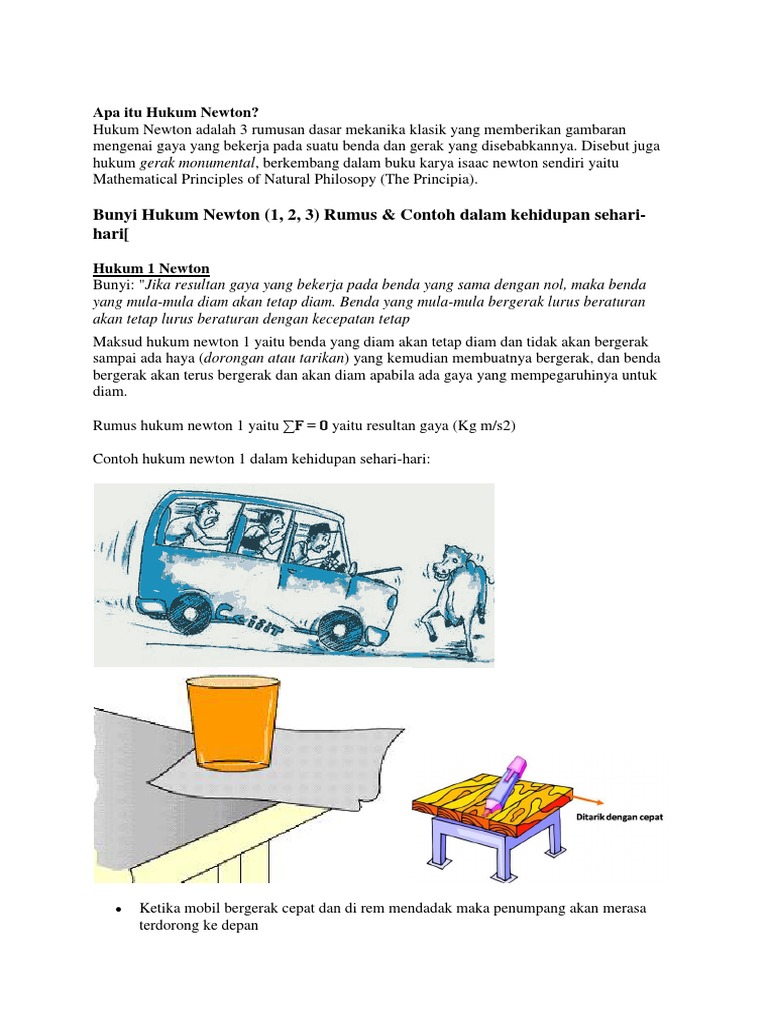 Hukum newton 1 2 3 pengertian bunyi rumus contoh soal by bapak dosen hukum newton hukum newton murupakan suatu hukum yang ada dalam dunia fisika yang menggambarkan hubungan antara suatu gaya yang bergerak dikarenakan adanya sebab. Contoh hukum newton 1 2 dan 3 sebelum membahas secara lebih dalam mengenai contoh hukum newton pertama kedua dan ketiga di dalam kehidupan sehari hari manusia ada baiknya bagi kalian para pembaca dan para pelajar untuk mengetahui terlebih dahulu mengenai apa itu hukum newton didalam ilmu fisika.