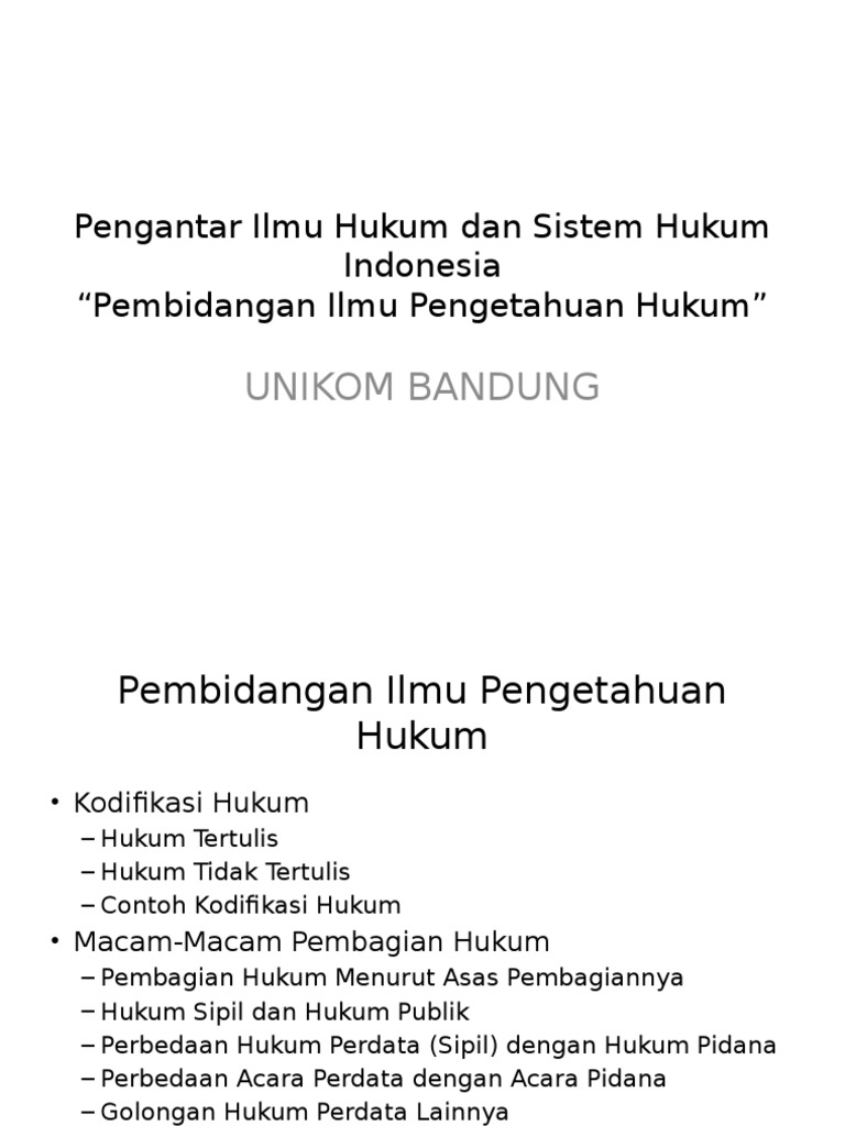 Hukum tertulis sendiri masih dibagi menjadi dua yakni hukum tertulis yang dikodifikasikan dan yang tidak dikodifikasikan. Contoh hukum yang tertulis adalah undang undang dasar 1945 kuhp kuh perdata undang undang no. Contoh hukum tidak tertulis yaitu. Hukum tertulis yang sudah dikodifikasikan adalah hukum tertulis yang penyusunannya secara sistematis lengkap teratur dan telah dibukukan sehingga tidak perlu adanya peraturan pelaksanaan. Adapun contoh hukum yang tidak tertulis antara lain adalah hukum adat norma norma dan lain sebagainya.