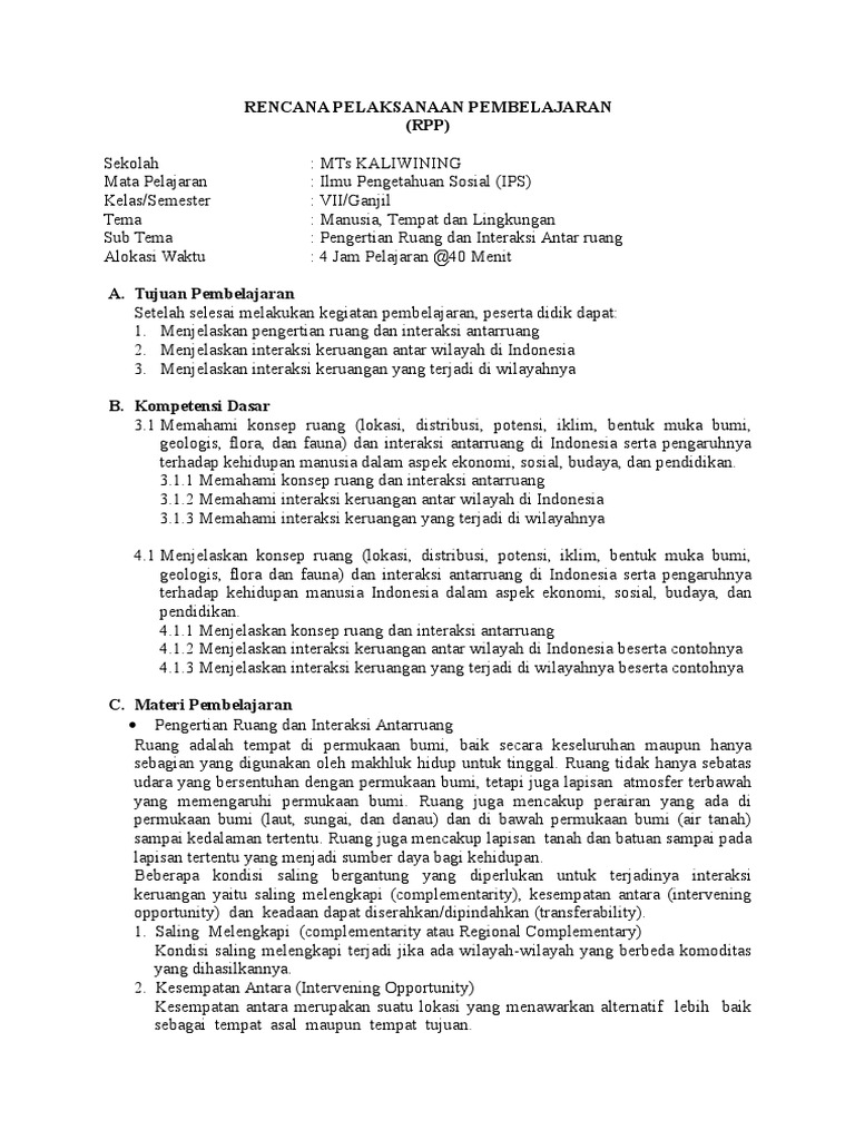 1 Rpp Interaksi Antar Ruang