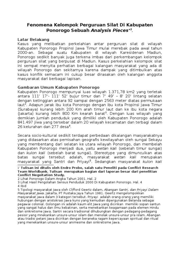 Doc Sejarah Pertikaian Dua Perguruan Pencak Silat Di Madiun