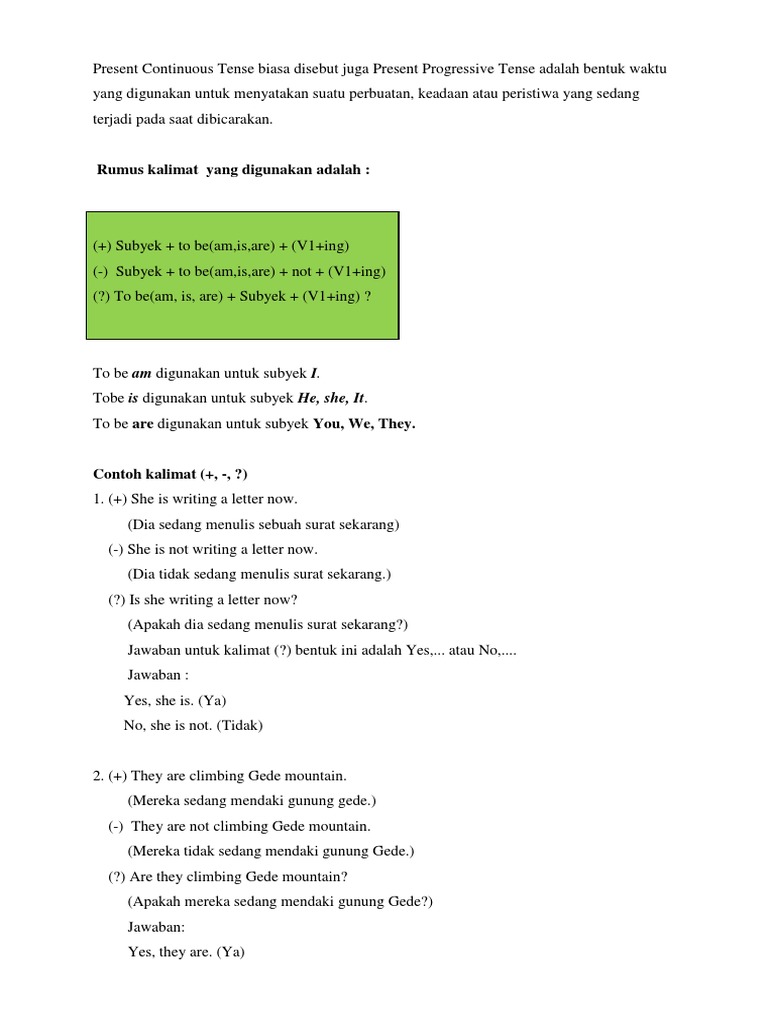 Contoh kalimat present continuous tense positive negative interrogative. 45 contoh kalimat present perfect tense termasuk positif negatif interogatif. Past continuous tense atau biasa juga dikenal dengan past progressive tense adalah tense yang digunakan untuk menyatakan kegiatan yang sedang terjadi pada waktu tertentu di masa lampau. Dari masing masing tenses tersebut kita dapat membentuk kalimat positif negatif dan juga introgatif. Aksikegiatan tersebut telah dan sedang berlangsung tapi belum selesai pada saat itu dan terkadang juga diselingi oleh sebuah aksi. Dari beberapa macam tenses dalam bahasa inggris ada 3 macam tenses yang umum digunakan yaitu bentuk simple present tense simple past tense dan future tense. Dalam bahasa inggris terdapat tiga waktu utama atau main tense yaitu present tense past tense dan future tensepresent tense terdiri dari simple present tense present continuous tense present perfect tense dan present perfect continuous tensecontoh present continuous tense positive negative interrogative digunakan untuk menyatakan suatu perbuatan atau tindakan yang sedang dilakukan atau.