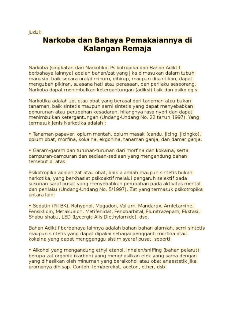 Tema itu sendiri sudah dijadkan beberapa artikel seperti contoh karangan eksposisi tentang narkoba contoh paragraf deduktif tentang narkoba contoh paragraf induktif tentang narkoba dan contoh paragraf sebab akibat tentang. Klik di sini untuk informasi file lengkap karangan eksposisi tentang narkoba selengkapnya. Artikel kali ini pun juga akan menampilkan contoh paragraf argumentasi di mana contoh tersebut berisi tema narkoba. Contoh paragraf eksposisi singkat handphone sudaqh brkelana kemana mana dari anak usia 7 tahun hngga dewasa handphone sudah menjadi pegangannya disetiap harinya. Daniel parera menjelaskan definisi eksposisi hanya sebatas sebuah karangan yang ditulis untuk memberikan sebuah informasi agar pembaca dapat memahami tulisan tersebut. 2 contoh teks eksposisi tentang narkoba beserta strukturnya written by ivanwira saturday september 23 2017 add comment yoo para pembaca kali ini saya akan membagikan 2 contoh teks eksposisi tentang narkoba beserta strukturnya yang merupakan salah satu materi pembelajaran bahasa indonesia yang mungkin teman teman butuhkan untuk mengerjakan tugas.