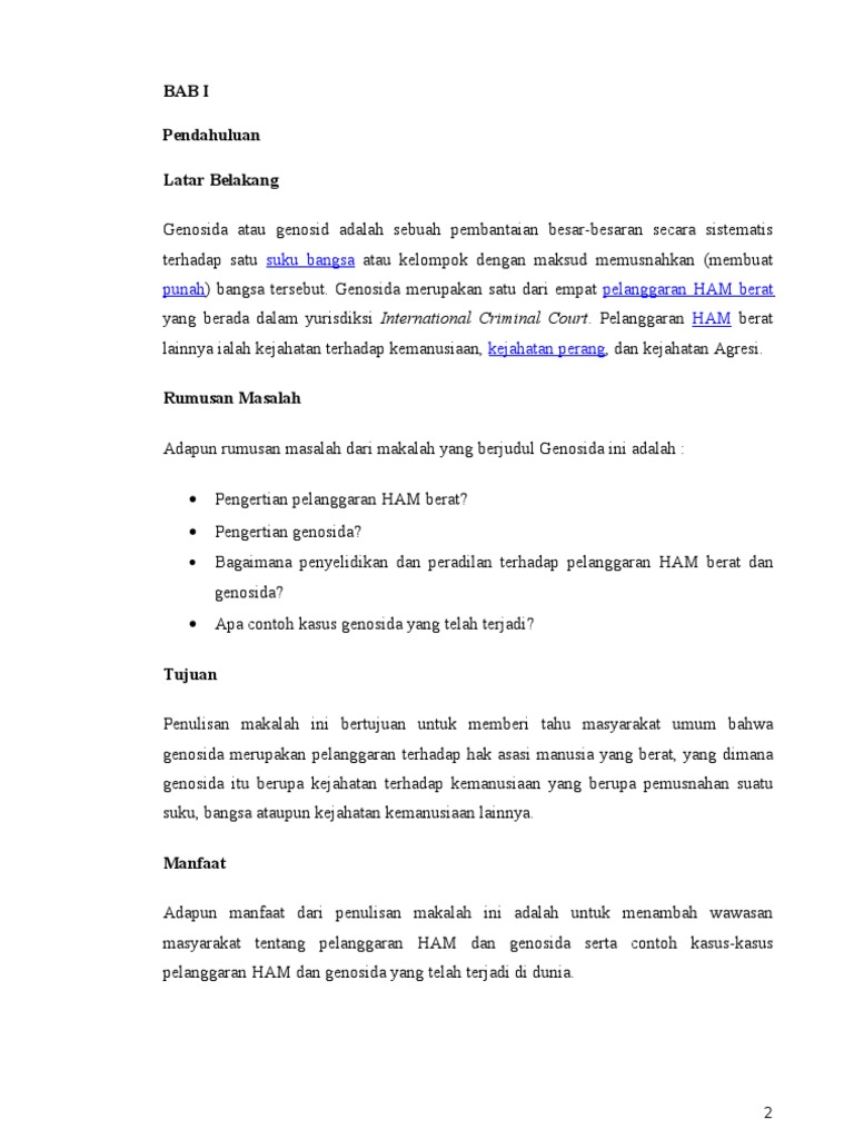 Istilah genosida pertama kali digunakan pada tahun 1944 oleh seorang ahli hukum yang berasal dari polandia beliau adalah raphael lemkin dalam bukunya axis rule in occupied europe. Beberapa kegiatan dibawah ini merupakan tindakan yang. Pembantaian oleh daendels pada saat pembangunan jalan raya anyer panarukan. Pelanggaran ham berat lainnya yaitu kejahatan pada kemanusiaan kejahatan agresi dan kejahatan perang. Pembantaian yang dinamakan westerling di sulawesi selatan. 4 contoh kejahatan genosida yang palinh diingat dalam sejarah.
