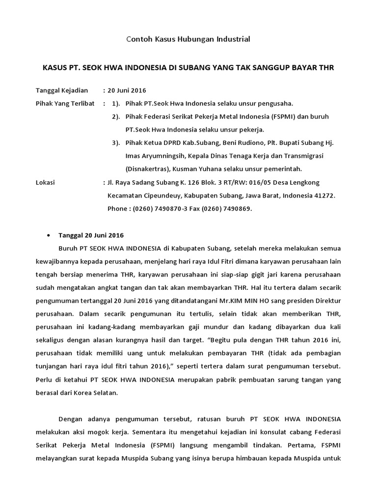 Montir sopir penulis dan sebagainya. Contoh kasus pelanggaran kontrak kerja kontrak kerjaperjanjian kerja adalah suatu perjanjian antara pekerja dan pengusaha secara lisan danatau tulisan baik untuk waktu tertentu maupun untuk waktu tidak tertentu yang memuat syarat syarat kerja hak dan kewajiban pekerja dan perusahaan. Sebelum undang undang ini berlaku secara effektif didalam masyarakat dalam penyelesaian pemutusan hubungan kerja masih memakai kepmen150 tahun 2000 dan undang undang nomor 13 tahun 2003 tentang undang undang ketenagakerjaan. Tenaga kerja tidak terdidik dan tidak terlatih. Ada undang undang yang mengatur untuk kepentingan dan untuk melindungi buruh atau pekerja yaitu undang undang no. Beberapa contoh kasus phk.