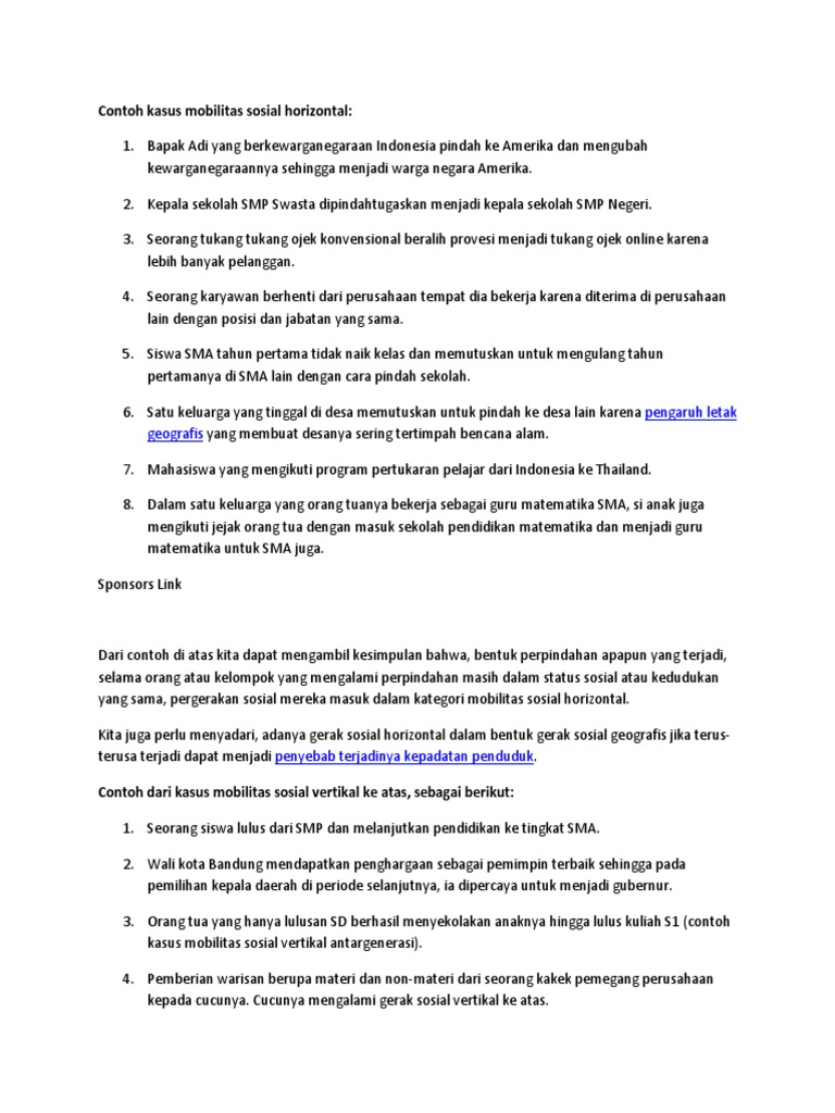 Contoh kasus mobilitas vertikal. Social climbing atau disebut mobilitas vertikal naik adalah mobilitas sosial yang di dalamnya terjadi kenaikan derajat. Pemimpin daerah dipenjarakan karena terlibat kasus korupsi. Mobilitas vertikal ke bawah social sinking. Masuknya individu individu yang mempunyai kedudukan rendah ke dalam kedudukan yang lebih tinggi contoh mobilitas vertikal naik adalah sebelumnya sebagai camat kemudian jadi wali kota. Seperti kita ketahui mobilitas vertikal berdasarkan jenisnya dibagi menjadi 2 yaitu mobilitas verikal ke atas dan mobilitas vertikal ke bawah namun dalam pembabahasan kali ini kita hanya akan mengupas lebih dalam mengenai mobilitas vertikal ke bawah. Contoh dari kasus mobilitas sosial vertikal ke bawah sebagai berikut.