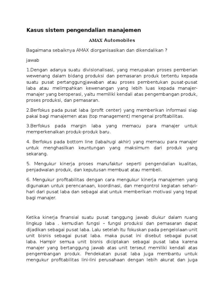 Contoh kasus sistem pengendalian manajemen pada perusahaan. Contoh kasus sistem pengendalian manajemen xerox corporation latar belakang xerox adalah perusahaan yang melayani pemrosesan dokumen secara global dan pasar jasa keuangan. Kearns menyerahkan kepemimpinan xerox ke paul allaire pada tahun 1991 setelah berhasil memutar haluan perusahaan pada tahun 1980. Pengertian sistem pengendalian manajemen. Setiap perusahaan yang bergerak dibidang jasa pelayanan antar seperti halnya go jek ok jek dan sebagainya perlu melakukan sistem pengendalian manajemen dan sistem pengendalian internal sejak dini agar kecenderungan kecurangan dapat dicegah dan diminimalisir. Yang telah mengembangkan. Academiaedu is a platform for academics to share research papers.