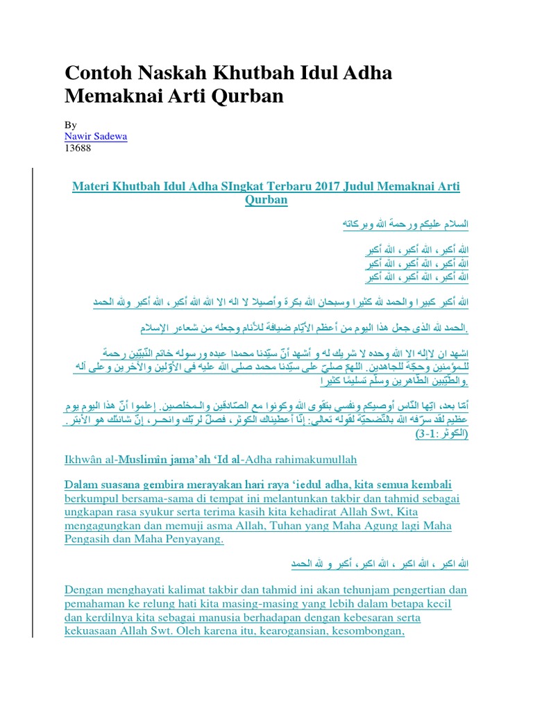 Khutnah idul adha pertama. Kumpulan naskah khutbah idul adha singkat terbaru 2020. Seperti contoh bisa di lihat pada sholat jumat yang di kerjakan pada hari yang memiliki nama sebagai sayyidul ayyâm atau rajanya hari. Fokusmuriacoid lifesyle khutbah idul adha singkat tentang qurban ini lah berupa bahasa jawa. الله أكبر ٣ الله أكبر ٣ الله اكبر ٣ الله أكبر كلما هل هلال وأبدر. Silahkan jadikan panduan contoh khutbah idul adha singkat padat terbaik terbaru 2020 1441 h tentang ibadah haji dan hikmah berqurban pendidikan persatuan dan kepemimpinan dan nabi ibrahim.