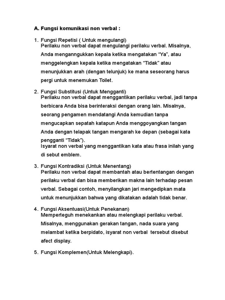 Contoh komunikasi non verbal. Jenis jenis komunikasi verbal non verbal dan tertulis komunikasi yang dalam bahasa inggris disebut dengan communication adalah proses penyampaian informasi dari satu orang ke orang lainnya dengan bantuan beberapa media. Pesan yang disampaikan pengirim kepada penerima pesan tersebut dikemas dengan kata kata verbal ataupun tanpa kata kata non verbal. Definisi komunikasi verbal yang lainnya ialah suatu jenis dari kegiatan percakapan atau penyampaian pesan maupun informasi yang dilakukan seseorang kepada. Menurut mark l knapp dalam mulyana 2009347 komunikasi nonverbal adalah istilah nonverbal biasanya digunakan untuk melukiskan semua peristiwa komunikasi di luar kata kata terucap dan tertulis. Komunikasi nonverbal adalah sebuah proses menggunakan pesan pesan tanpa kata untuk menyamakan makna. Sentuhan sentuhan dapat termasuk.