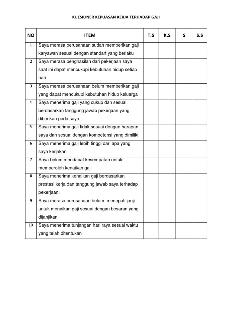 Saya menerima gaji yang cukup dan sesuai berdasarkan tanggung jawab pekerjaan yang diberikan pada saya 4. Download kuesioner kepuasan pelanggan.