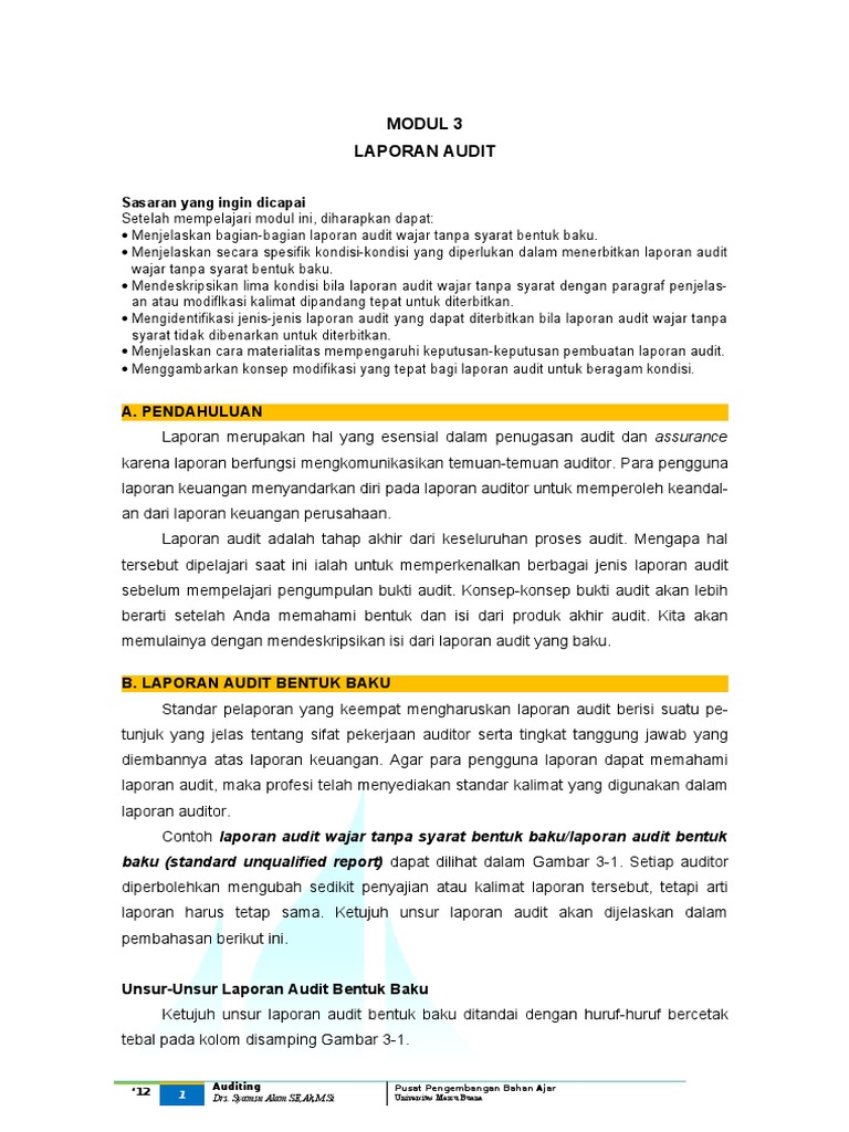 Margonda raya no 100 pondok cina depok kami telah mengaudit neraca pt. Pendapat wajar dengan pengecualian kamubisa iodi bawah ini adalah contoh dari pendapat auditor yang memberikan pendapatnya wajar denganpengecualian karena adanya penggunaan prinsip akuntansi yang menyimpang dari prinsip akuntansi yang berlaku umum di indonesia. Berikut ini adalah soal uts lengkap kelas 1 6 sdmi semua mata pelajaran 20162017 yang merupakan kumpulan file dari berbagi sumber bank soaldownloadsd tentang contoh laporan audit wajar tanpa pengecualian dengan bahasa penjelas yang bisa bapakibu gunakan dan diunduh secara gratis dengan menekan tombol download biru dibawah ini. Opini wajar tanpa pengecualian unqualified opinion adalah suatu pendapat yang diberikan pada saat audit sudah dilaksanakan sesuai dengan standar auditing spap auditor tersebut tidak menemukan adanya kesalahan material secara keseluruhan laporan keuangan atau juga tidak terdapat penyimpangan dari adanya prinsip akuntansi yang berlaku sak. Laporan audit independen kepada yth. Tidak ada keadaan yang memungkinkan auditor untuk menambahkan paragraf penjelas atau modifikasi laporan.