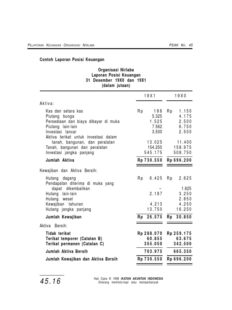 Laporan posisi keuangan statement of financial positionneraca balance sheet. Laporan posisi keuangan atau neraca adalah salah satu laporan keuangan yang memberikan informasi tentang posisi aktiva kewajiban dan modal yang disajikan pada akhir periode.