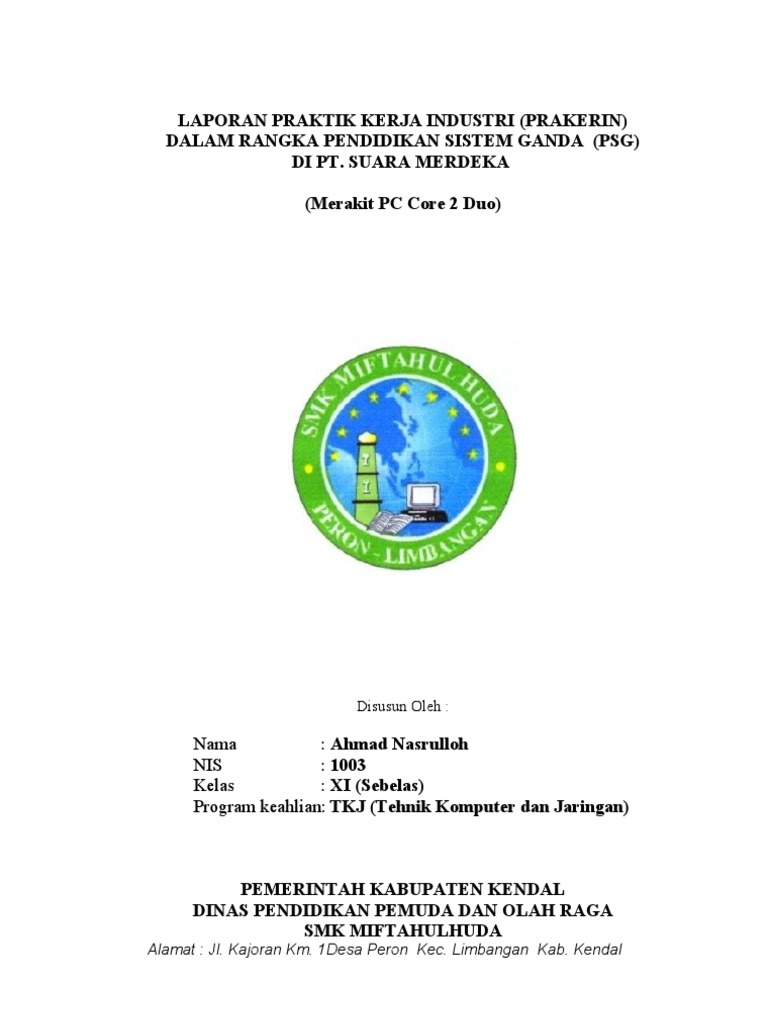 Langkah yang dilakukan untuk merakit sebuah komputer adalah. 3 gabuskulon kecamatan gabus wetan kabupaten indramayu 45263. Laporan praktek kerja industri. Halaman pengesahan pembimbing yang bertanda tangan di bawah ini guru pembimbing pembimbing lapangan praktek kerja industri pimpinan elmi computer centre ecc dan kepala smk dharma bahari surabaya menyatakan bahwa praktek kerja industri dari. Laporan prakerin smk jurusan tkj teknik komputer jaringan laporan praktek kerja industriinstansi. Penulis mengucapkan terima kasih kepada semua pihak yang telah membantu membimbing dan memberikan dukungan kepada penulis dalam pelaksanaan p raktik k erja i ndustri prakerin dan d engan terselesaikannya laporan ini penulis ingin menyampaikan terima kasih yang sebesar besarnya kepada.