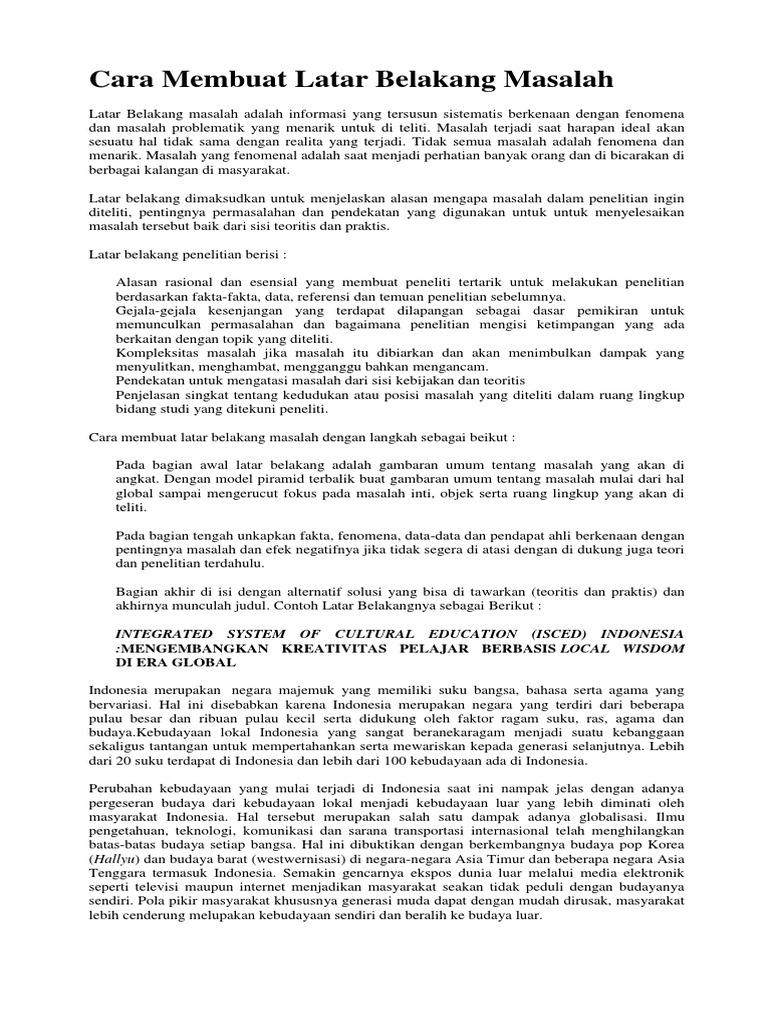 Contoh latar belakang masalah. Di dalam latar belakang masalah ini seolah olah peneliti sedang menjadi seorang detektif yang sedang mengamati lingkungan di tempat kejadian perkara. Buatlah latar belakang masalah yang lebih proporsional jangan sampai melebihi isi dari tulisan yang anda buat. Kini coba kita bahas latar belakang makalah agar lebih mempermudah anda saat menyusun makalah. Download contoh latar belakang. Tapi mungkin beberapa dari kalian masih bingung dengan latar belakang masalah. Contoh latar belakang masalah.