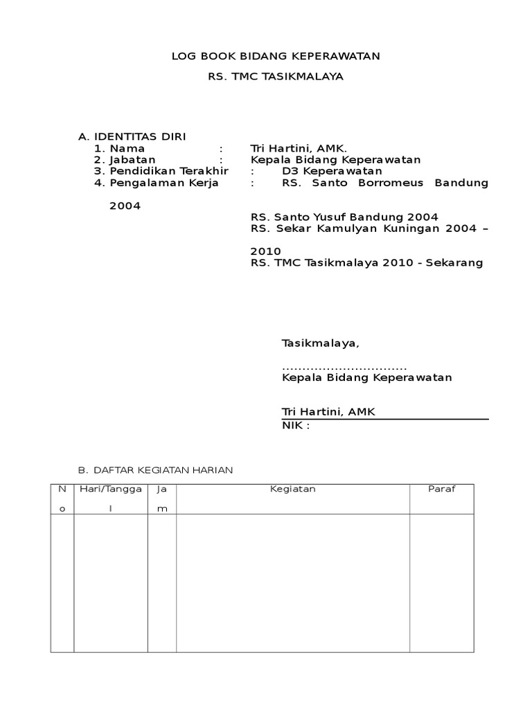 Contoh log book kegiatan harian. Selasa agustus 07 2012 info mehasiswa materi 3 comments. Log book harian perawat. Teknis membuat log book puslitpen uin sunan gunung djati bandung mengembangkan sistem log book penelitian berbasis aplikasi pada website lp2m. Verifikasi jam kegiatan waktu jumlah keterangan ya tdk operan dinas. Contoh laporan singkat kegiatan jika kita bekerja pada sebuah institusi atau berorganisasi di sekolah setiap kegiatan yang diselenggarakan baik itu kegiatan pelatihan bakti sosial pramuka lomba 17 agustus dan acara acara lainnya pasti selalu dimintai pertanggungjawabannya entah itu berupa laporan tertulis ataupun dokumentasi berupa foto. Catatan harian program kreatifitas mahasiswa pkm p tahun 2012.
