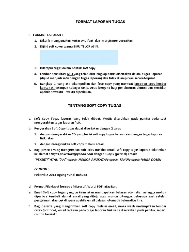 Contoh membuat laporan tugas. Apa itu surat tugas. Laporan adalah sebuah karya tulis yang dibuat oleh seseorang atau sekelompok orang dengan tujuan sebagai bukti pertanggungjawaban atas pelaksanaan tugas yang diberikan. Contoh laporan laporan merupakan bentuk pemberitahuan atau penyampaian berita dari seorang bawahan terhadap atasannya akan suatu kejadian atau kegiatan. Agar dapat digunakan sebagai bahan pertimbangan atau pengambilan keputusan sebuah laporan harus memuat data yang benar objektif dan sistematis. Ada 2 metode dalam menyampaikan sebuah laporan. Penyampaian laporan dari bawahan merupakan bentuk pertanggungjawaban terhadap pimpinannya yang memegang kekuasaan.