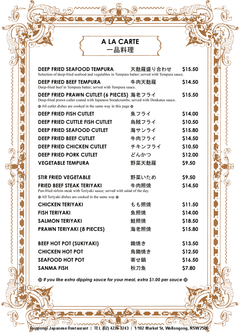 Jenis menu ala carte menu ala carte adalah suatu susunan menu dimana setiap makanan yang dicantumkan pada daftar makanan tersebut disertai dengan harga tersendiri. Pengertian ala carte restaurant mengindikasikan bahwa restoran tersebut mempunyai menu yang masih fresh dan belum dimasak. O sphagethi marinara rp. Jadi proses pembuatannya juga sedikit agak lama. Menu or a bill of fare is a list of prepared and presentation should attract customer and represent value for moneydalam terjemahannya berarti menu adalah sebuah daftar makanan yang telah dilengkapi dengan harga masing masing yang disediakan dan ditampilkan untuk menarik pelanggan serta memberikan nilai. Ada 50 gambar contoh desain menu makanan ala carte keren untuk membuat bisnis anda semakin ramai.