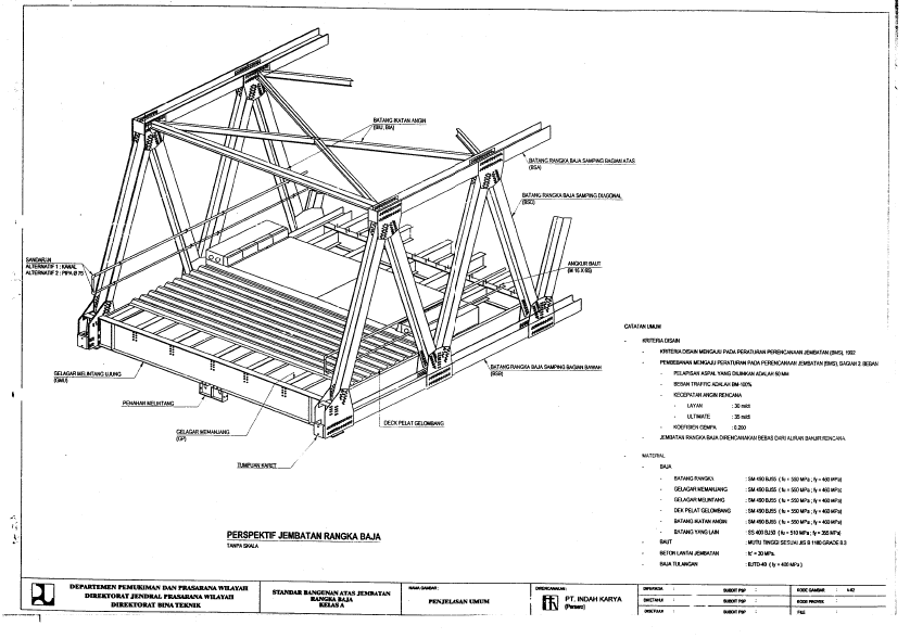 Contoh metode pelaksanaan jembatan rangka baja. Academiaedu is a platform for academics to share research papers. Perakitan dan pemasangan struktur jembatan baja baik dengan peluncuran maupun dengan prosedur pelaksanaan pemasangan bertahap harus dilaksanakan oleh penyedia jasa dengan teliti sesuai dengan prosedur yang ditetapkan oleh masing masing buku petunjuk perakitan dan pemasangan dari pabrik pembuat jembatan dan ketentuan umum yang disyaratkan di sini. Metode cast insitu terdiri dari. Mss movable scaffolding system b. Metode pelaksanaan konstruksi jembatan. Pengadaan jembatan rangka baja terdiri dari komponen komponen baja standar prafabrikasi yang dipasok lengkap hingga batas tumpuan termasuk tumpuan elastomer penahan dan peredam gempa lateral sandaran dan plat baja gelombang untuk lantai jembatan yang diproduksi di pabrikan rangka baja.