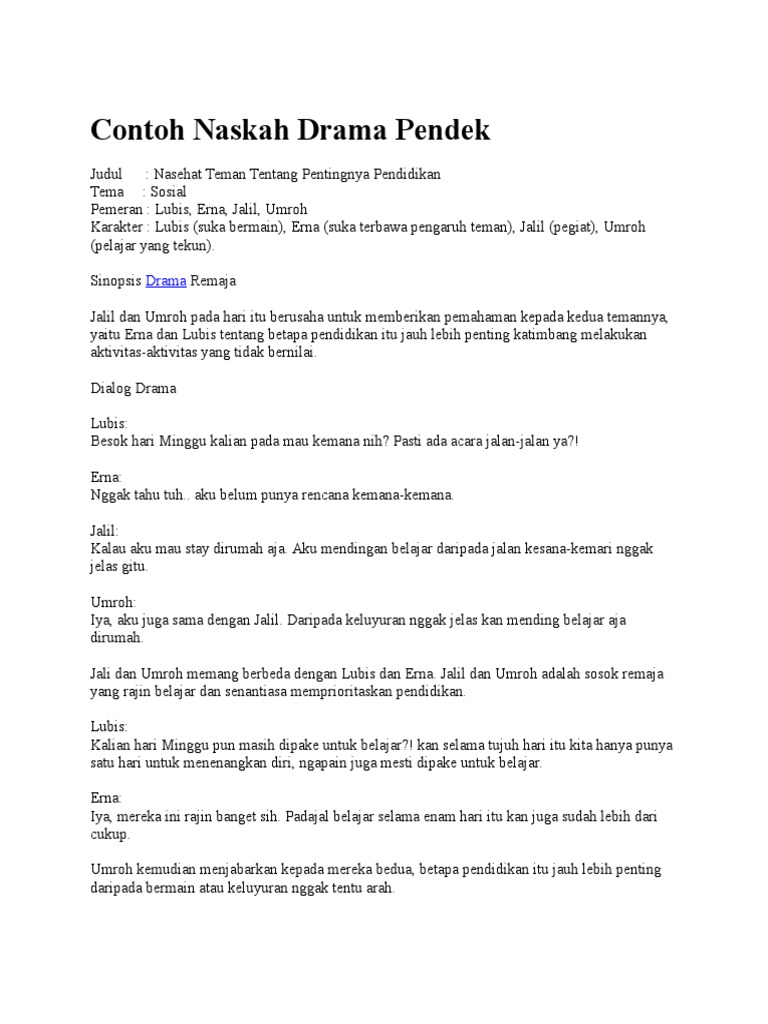 Semoga baik baik saja ya. Contoh teks drama eksposisi. Suatu ketika disaat keadilan sudah menjadi kata yang punah. Contoh teks naskah drama pendek persahabatan yang dimainkan 4 5 6 7 8 10 orang. Tentang belajar tema. Hallo sobat santaidamai gimana kabarnya.
