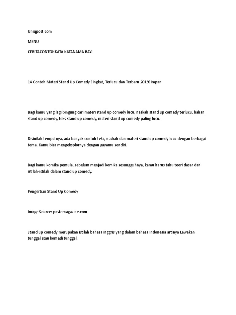 Contoh naskah stand up comedy singkat dan lucu. Jangan jangan kancutnya belah tengah. Bukan hanya di indonesia tapi di seluruh dunia. Bagi kamu komika pemula sebelum menjadi komika sesungguhnya kamu. Jangan niru saya bisanya nulis doang tapi tak pernah praktek hehehe. Stand up comedy humor monolog yang dibawakan secara tunggal beberapa tahun terakhir ini lagi ngetrend dan banyak digemari. Contoh naskah stand up comedy tentang cinta oke selamat siang semua.