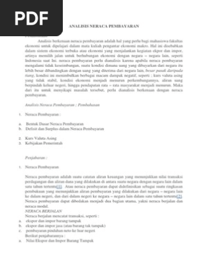 Neraca pembayaran adalah catatan yang sistematik tentang transaksi ekonomi internasional antara penduduk negara itu dengan penduduk negara lain. Perhatikan contoh berikut untuk memperjelas istilah dan definisi tersebut. Hal ini dikarenakan dalam pencatatan neraca pembayaran internasional neraca secara keseluruhan harus seimbang atau saldonya sama dengan nol. Pada tabel iv1 tampak bahwa pencatatan transaksi yang menimbulkan kewajiban mwmbayar pihak indonesia dicatat dengan angka minus sedangkan yang menimbulkan hak bagi pihak indonesia untuk menerima pembayaran dari pihak asing dicatat dengan angka positif.