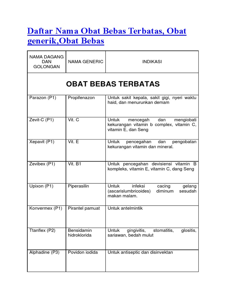 Tanda khusus pada kemasan dan etiket obat bebas terbatas adalah lingkaran biru dengan garis tepi berwarna hitam. Contoh obat bebas terbatas p1 p6 macam macam obat keras adapun daftar obat keras yang dibedakan menurut golongan dari p1 hingga p6 antara lain adalah. Enkasari listerine alphadine biosepton dll. Untuk mencegah dan mengiobati kekurangan vitamin b complex vitamin c vitamin e dan seng. Obat keras hanya untuk kumur jangan ditela contoh. Untuk sakit kepala sakit gigi nyeri waktu haid dan menurunkan demam.