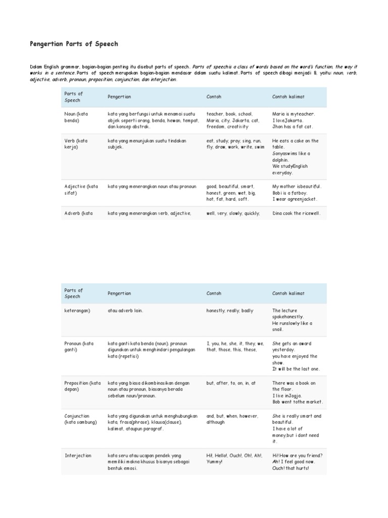 Parts Of Speech Pengertian Macam Contoh Kalimat Bahasa Inggris