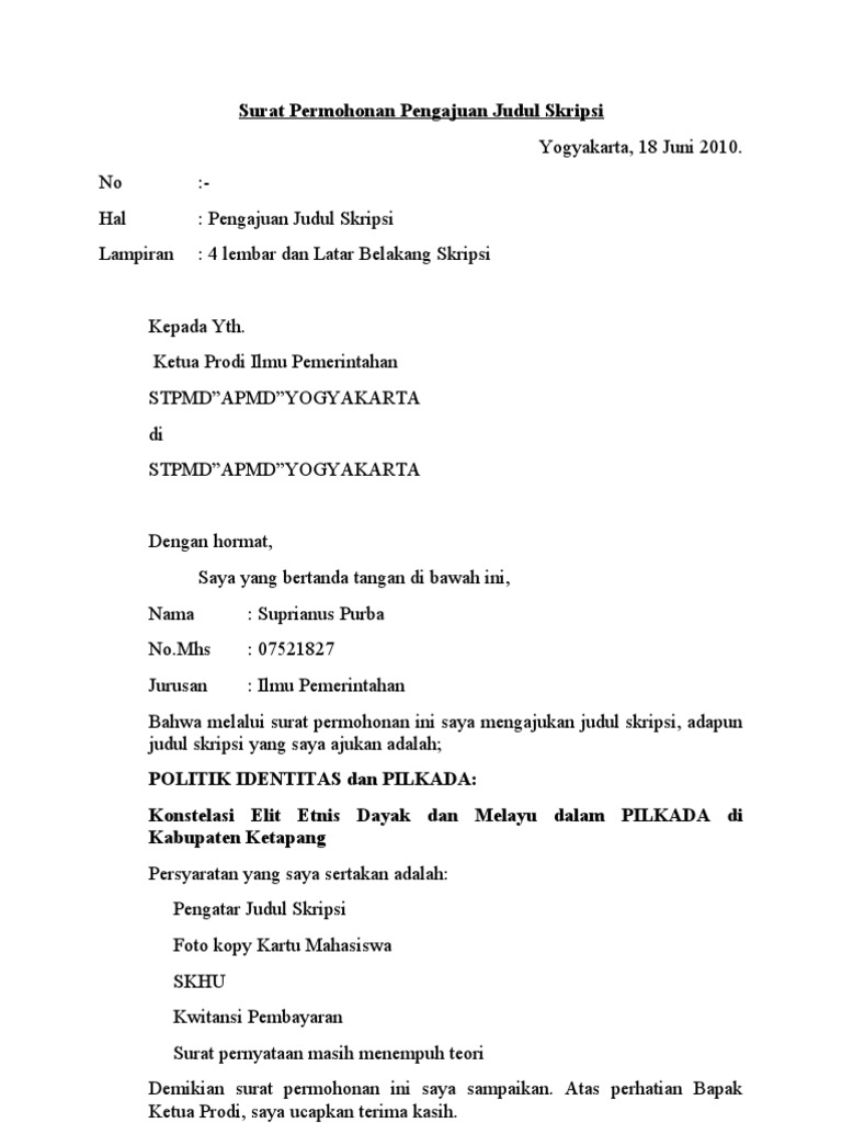 Keuntungan contoh proposal skripsi penuh ini adalah penyusunan skripsi akan menjadi lebih singkat karena bab bab yang ada dalam proposal tersebut nantinya akan menjadi skripsi itu sendiri. Academiaedu is a platform for academics to share research papers. Tapi tiap kelebihan tentu ada kelemahan bab bab di atas nantinya akan terjadi banyak perubahan atau biasa disebut revisi ketika penelitian berjalan. Contoh jurnal pengajuan judul skripsi. Contoh proposal pengajuan judul skripsi. Semoga bagi kalian yang sedang membutuhkan artikel ini untuk sebagai syarat perkuliahan bahkan untuk tugas akhir skripsi agar dapat bermanfaat.