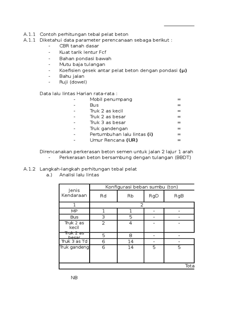 Untuk itu praktisi perkerasan jalan didorong untuk. Contoh perhitungan perencanaan perkerasan jalan 71 perhitungan tebal lapisan perkerasan untuk merencanakan lapisan tebal perkerasan pada perencanaan konstruksi jalan raya data datanya yaitu. Mobil penumpang 11 1850 kendaraan. Lampiran 1 contoh perhitungan tebal perkerasan lentur metode aashto 1993. Dalam konstruksi perkerasan kaku plat beton sering disebut sebagai lapis pondasi karena dimungkinkan masih adanya lapisan aspal beton di atasnya yang berfungsi sebagai lapis permukaan. Komposisi kendaraan awal umur rencana pada tahun 2009.