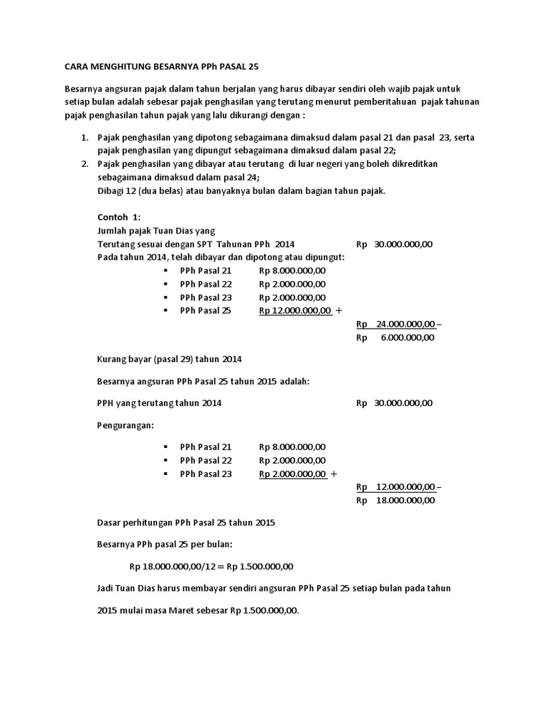 Contoh perhitungan pph pasal 25. Menurut uu undang undang no.