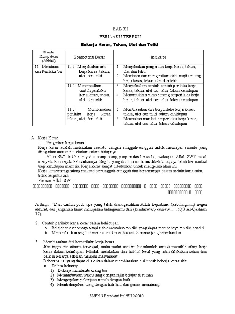 Contoh perilaku kerja keras tekun ulet dan teliti kerja keras tekun ulet dan teliti saling berhubungan satu sama lain karena suatu usaha atau tujuan tertentu yang sudah dilakukan dengan kerja keras tanpa adanya ketekunan keuletan dan ketelitian tidak akan tercapai secara maksimal. Ayat ayat al quran tentang kerja keras karena dengan bekerja kita menunjukkan usaha kita untuk mendapatkan rezeki sebagaimana yang telah diatur oleh allah swt.